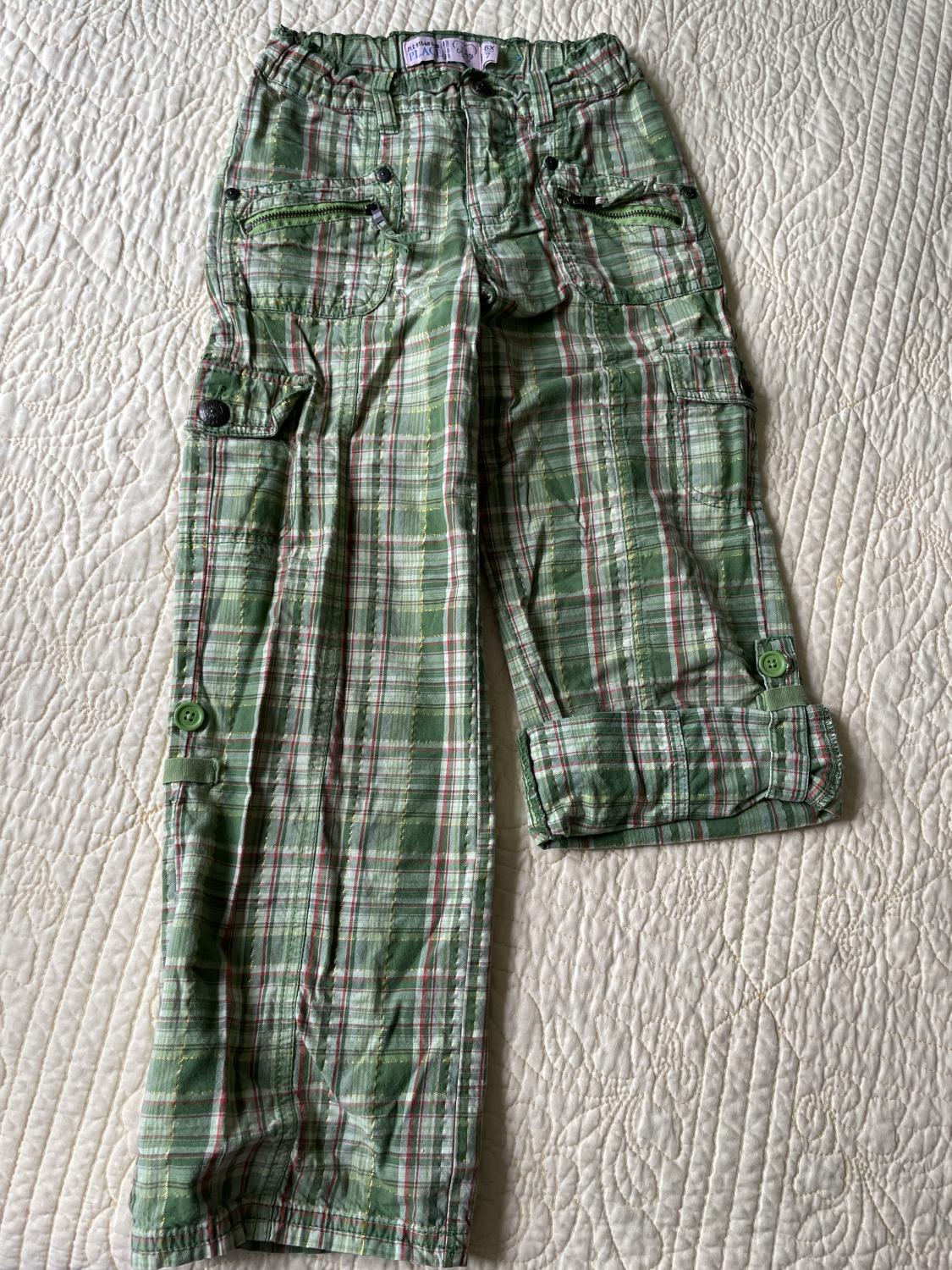 Childrens Place Green Plaid Pants (Convert to Capris) with Adjustable Waist, 6x-7