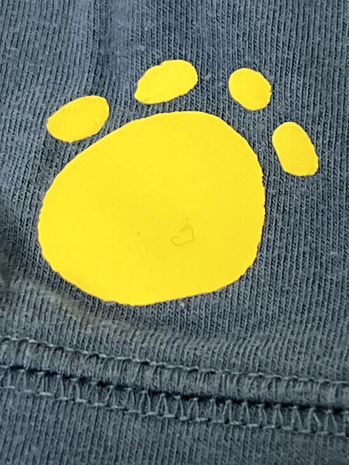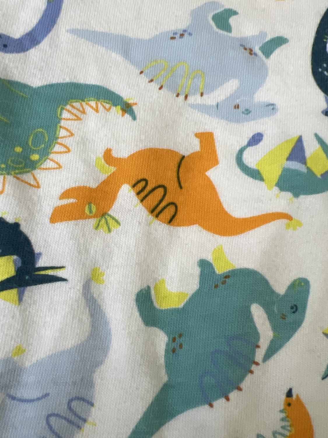 Super cute dinosaurs and green paw prints on pant knees in excellent condition