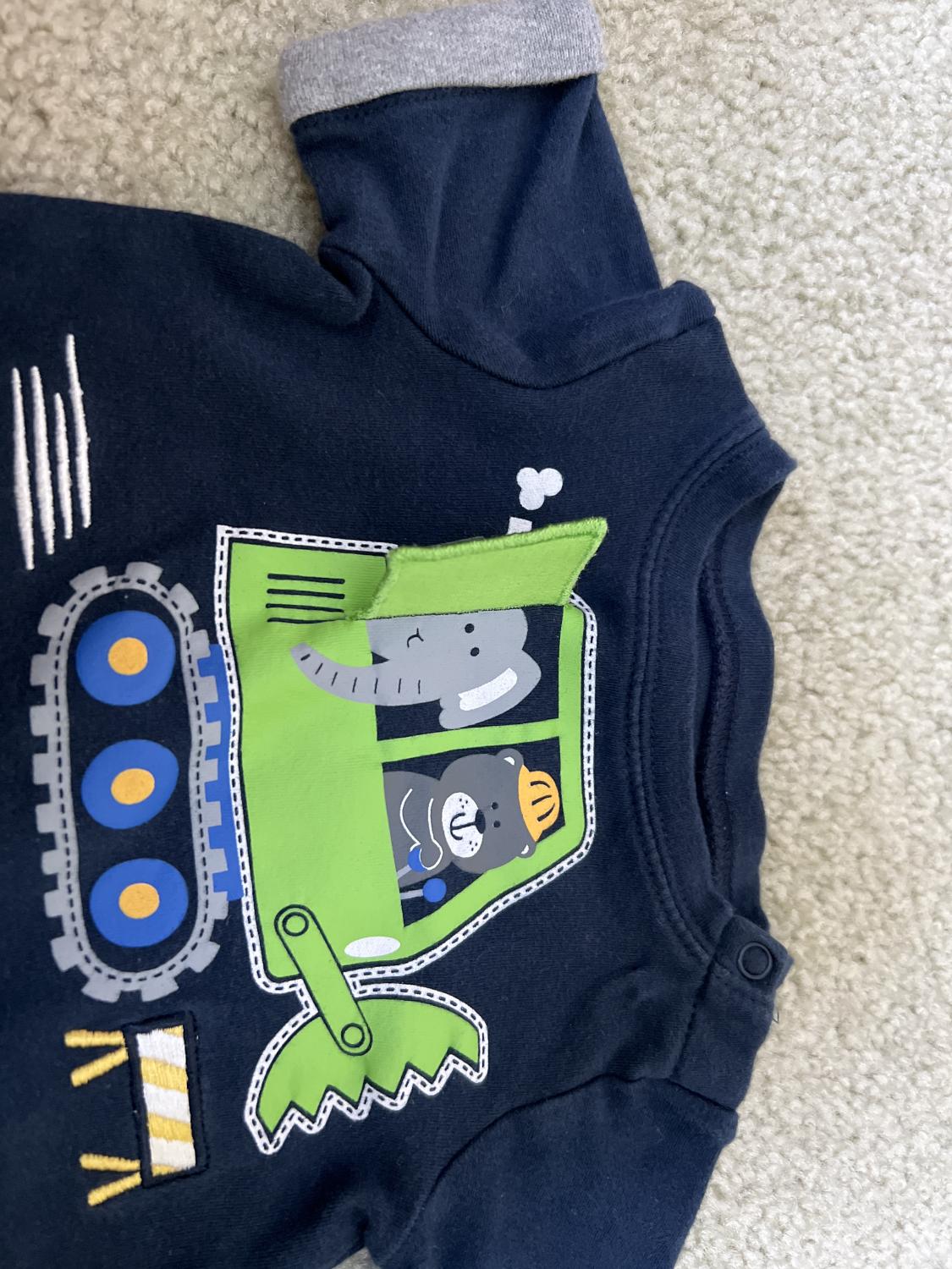 Super cute opening flap on onesie and embroidered construction signs