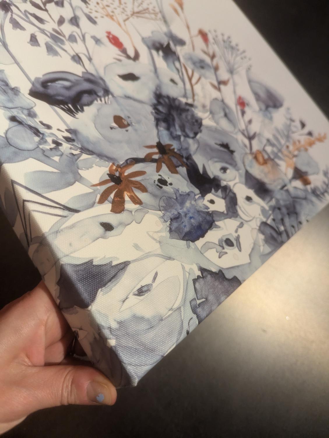 Like new. Slightly abstract, floral accent piece. Nice unassuming wall art to round out a room. Measures 16