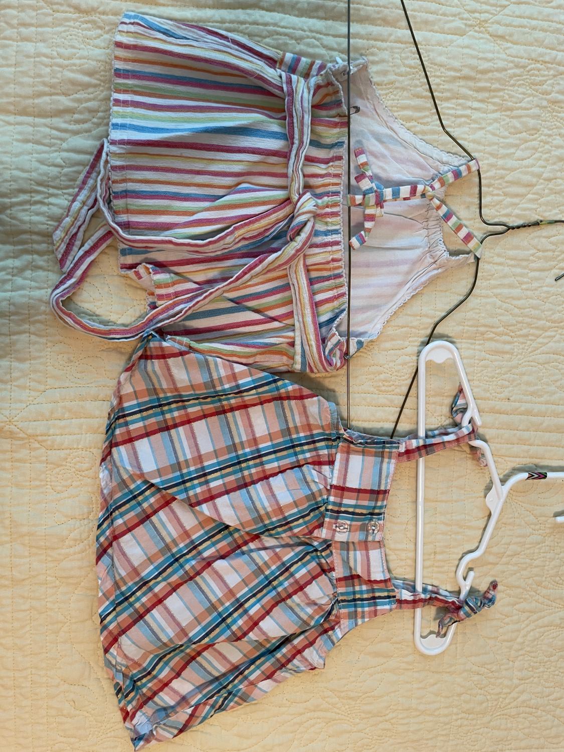 (2) Summer Halter Shirts: Childrens Place Striped and Young Hearts Plaid and Sparkle