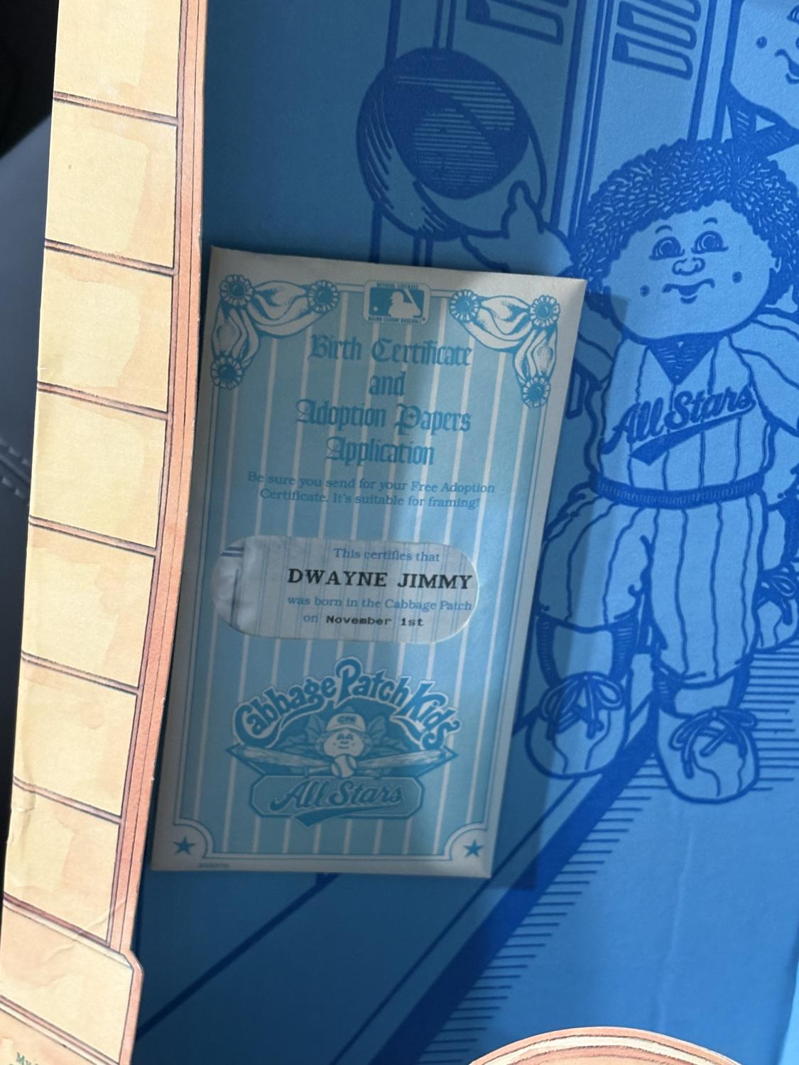 I original box. Doll has been removed but is in wonderful condition. Birth certificate and helmet are still attached