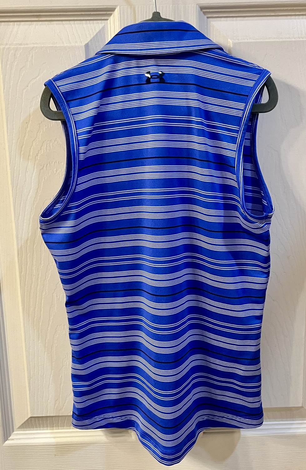 Under Armour Blue Stripe Athletic Sleeveless Polo Top