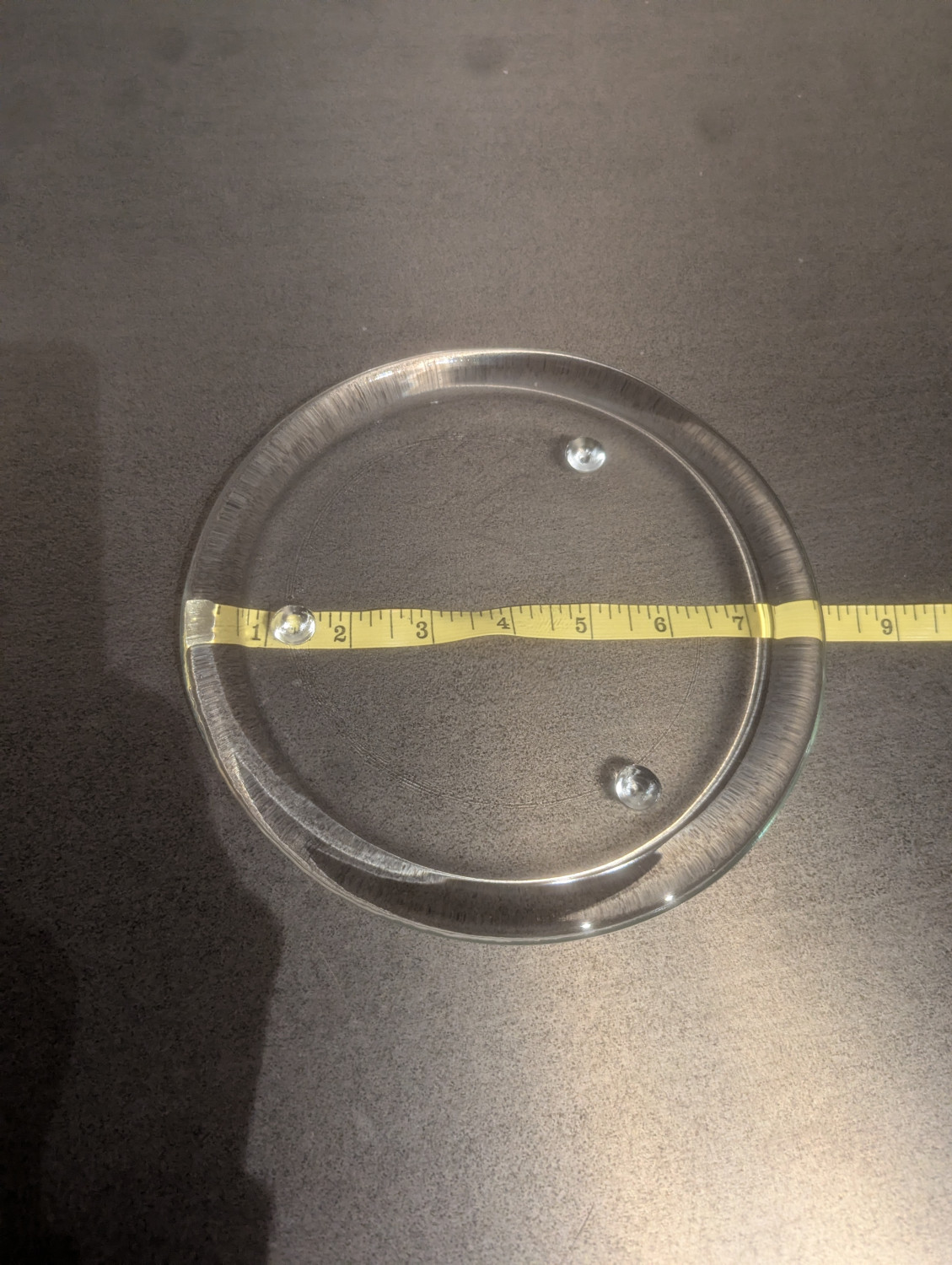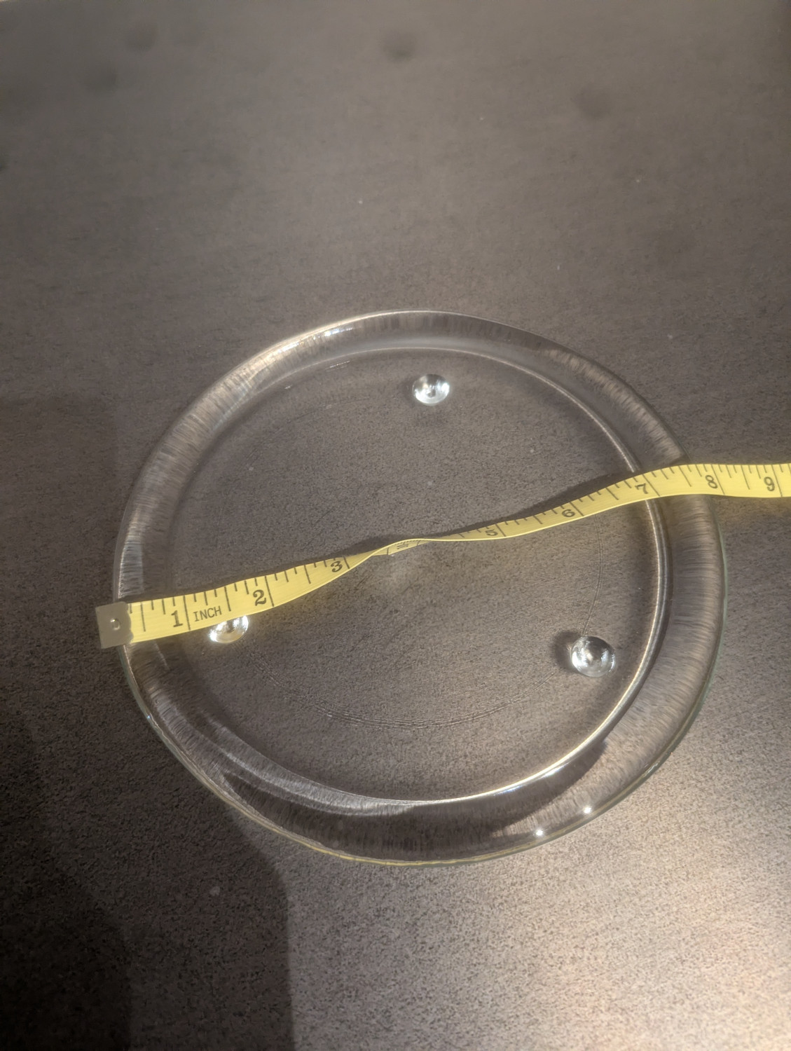 Large size for big planter or to display multiple small candles or succulents. 8 inches diameter, 6 inches excluding the outer lip. Has 3 risers, elevating approximately 3/4 inch. EUC, tag removed