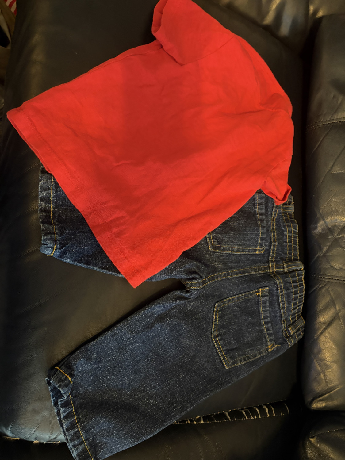 Like new. 12 month outfit with short sleeved red shirt and pair of jeans.