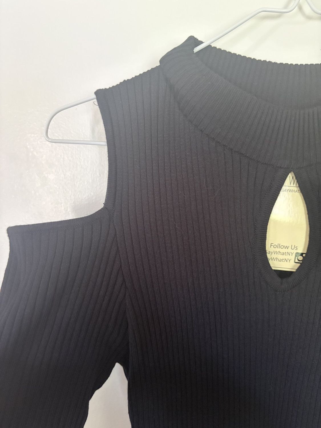 Juniors Large Say What Sleeveless Cold-Shoulder Knit Midi Dress - Black Tote1