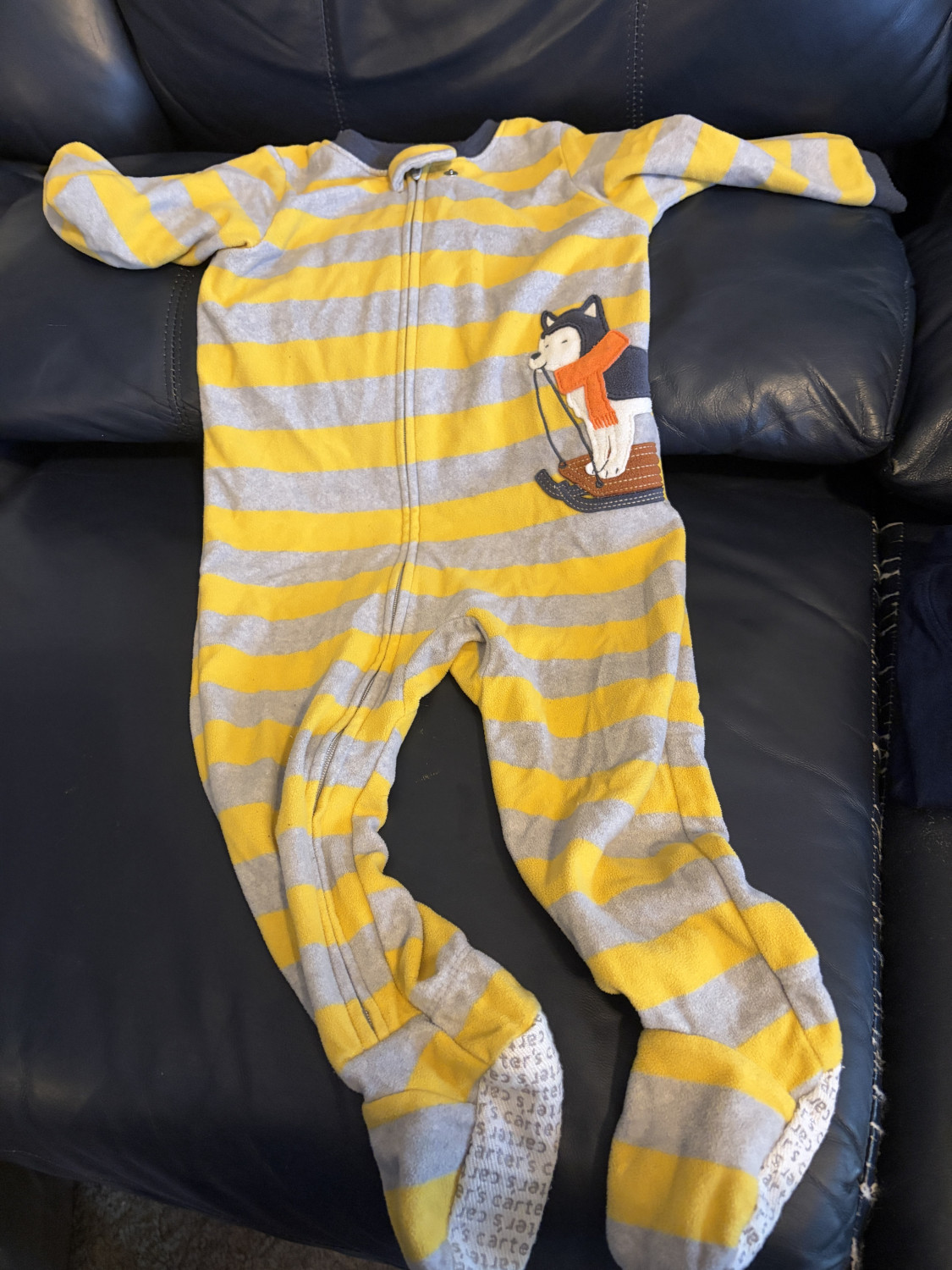 In great condition. 18 month zipped pajamas long sleeved with feet