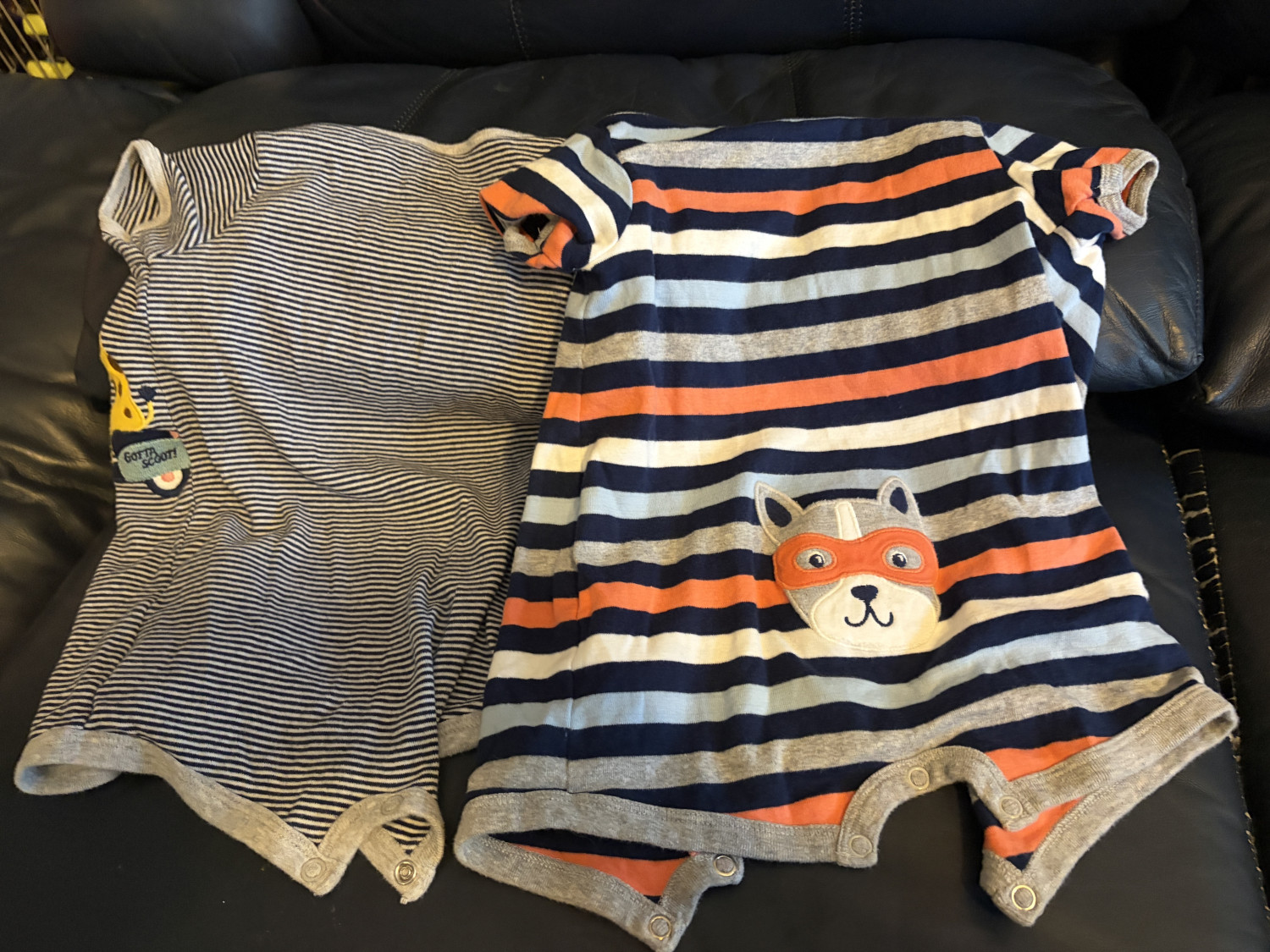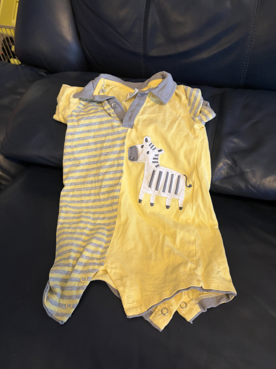 Like new. Lot of 3 rompers size 12 months. 1 has a giraffe on it, 1 has a dog on it, and the third has a zebra on it.