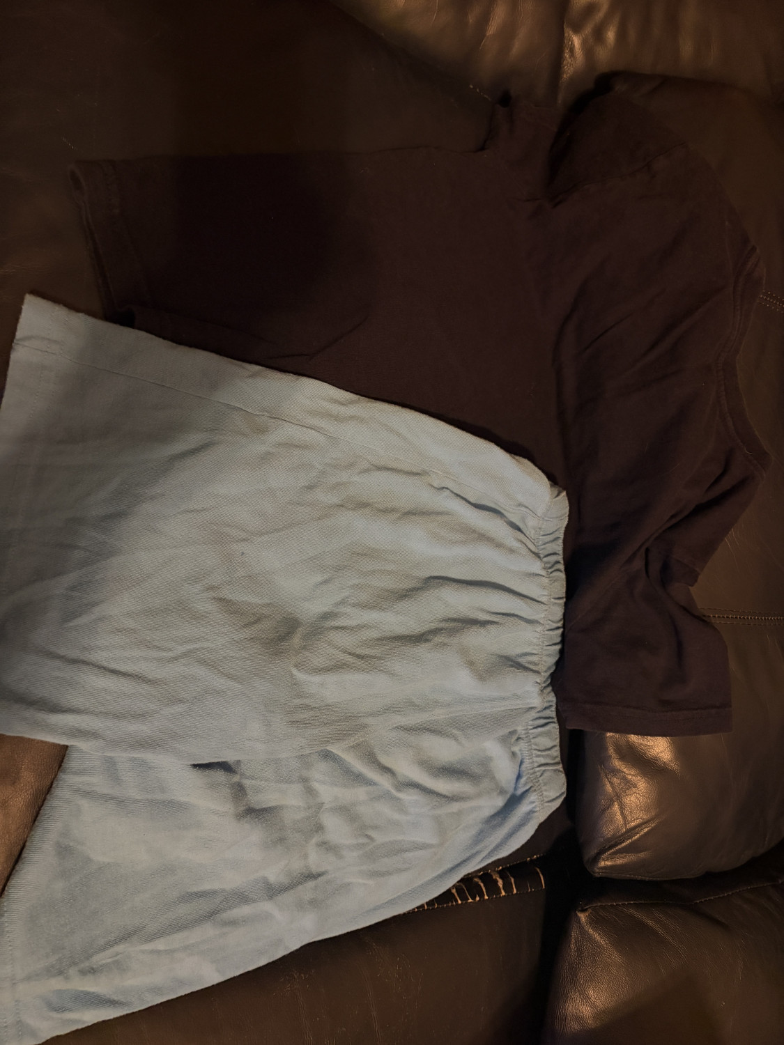 Like new. Size 7-8 football themed short sleeved shirt and a blue pair of shorts.