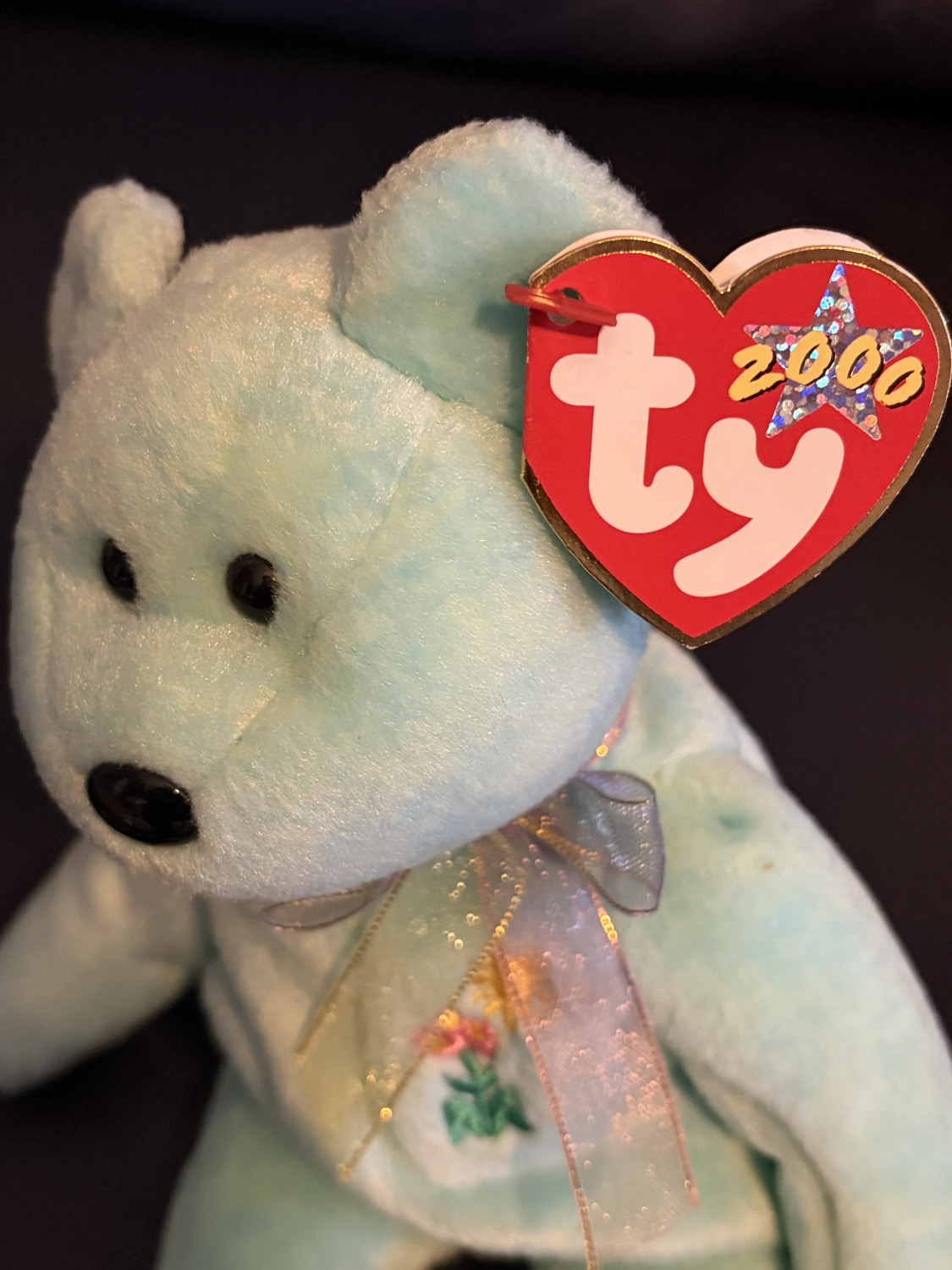 Like new. TY Beanie Baby Bear from 2000. Still has the tag. It is light blue with a flower and bow on it.