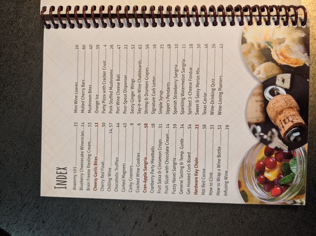 Unused book with minor cover wear. Includes recipes using wine, craft ideas and instructions using wine bottles and corks, and wine selections and pairing tips.
